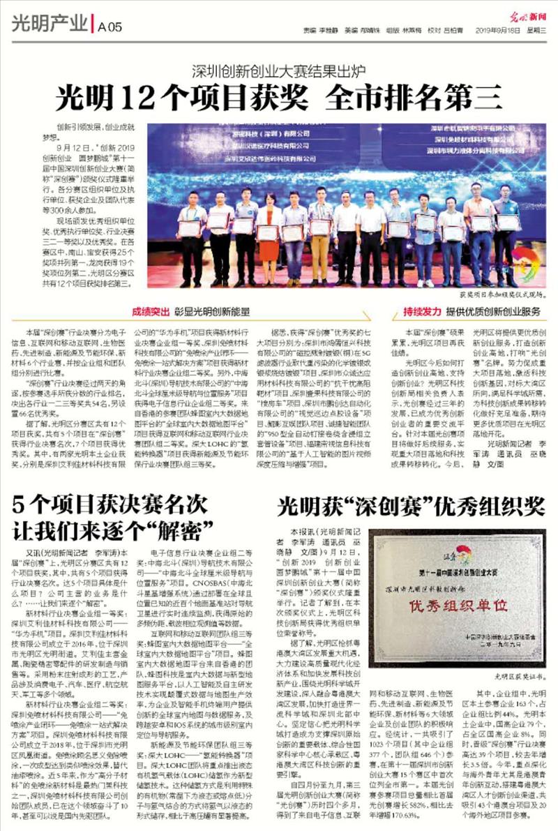 榮獲2019年第十一屆中國深圳創新創業大賽二等獎